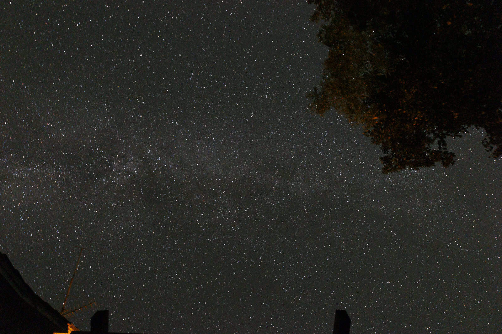 Bei meiner Tante im Garten auf dem Dorf fange ich an einem klaren Sommerabend den Sternenhimmel ein und bin sehr fasziniert davon. So als Stadtkind sehe ich ja nie die volle Pracht.